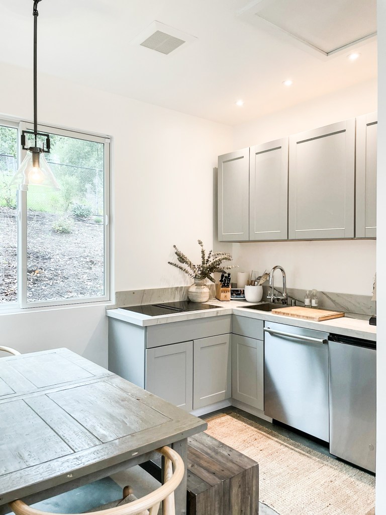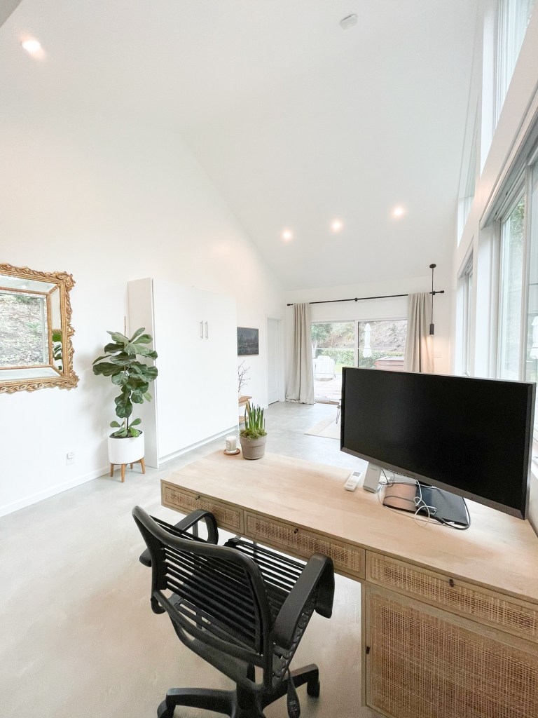 A lemon tree to welcome you into an oasis amidst of Bay Area’s busy living. You might feel you entered a different world. Privacy is the key at this family home, enter through a lovely porch area, bring some fresh lemons for the kitchen. Meditative blue, wood and gold set on a white canvas greets you while entering this home. Kitchen playfully molds antique and new elements together, the quartz kitchen counter and barstool area provides space for endless hours of cooking and enjoyment. Enter into the backyard and take a deep breath, a private setting with olive and lemon trees plays around lavenders and grasses.